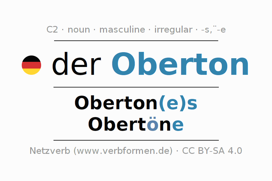 - Singular: der Oberton, des Oberton(e)s, dem Oberton(e), den Oberton