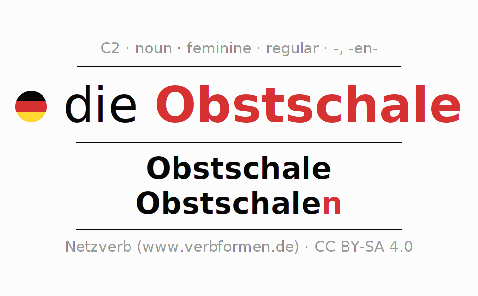 - Plural: die Obstschalen, der Obstschalen, den Obstschalen, die Obstschalen