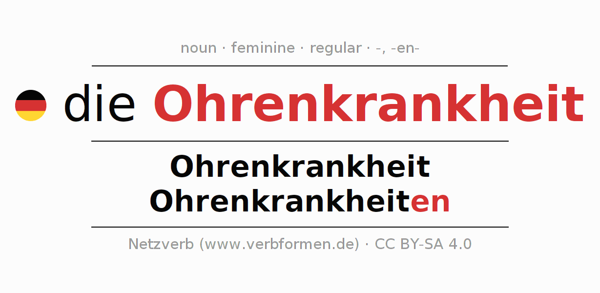 | Nom. | die Ohrenkrankheit | die Ohrenkrankheiten |
