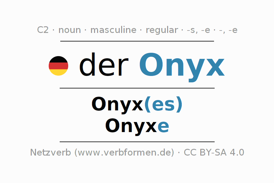 - Singular: der Onyx, des Onyx(es), dem Onyx(e), den Onyx