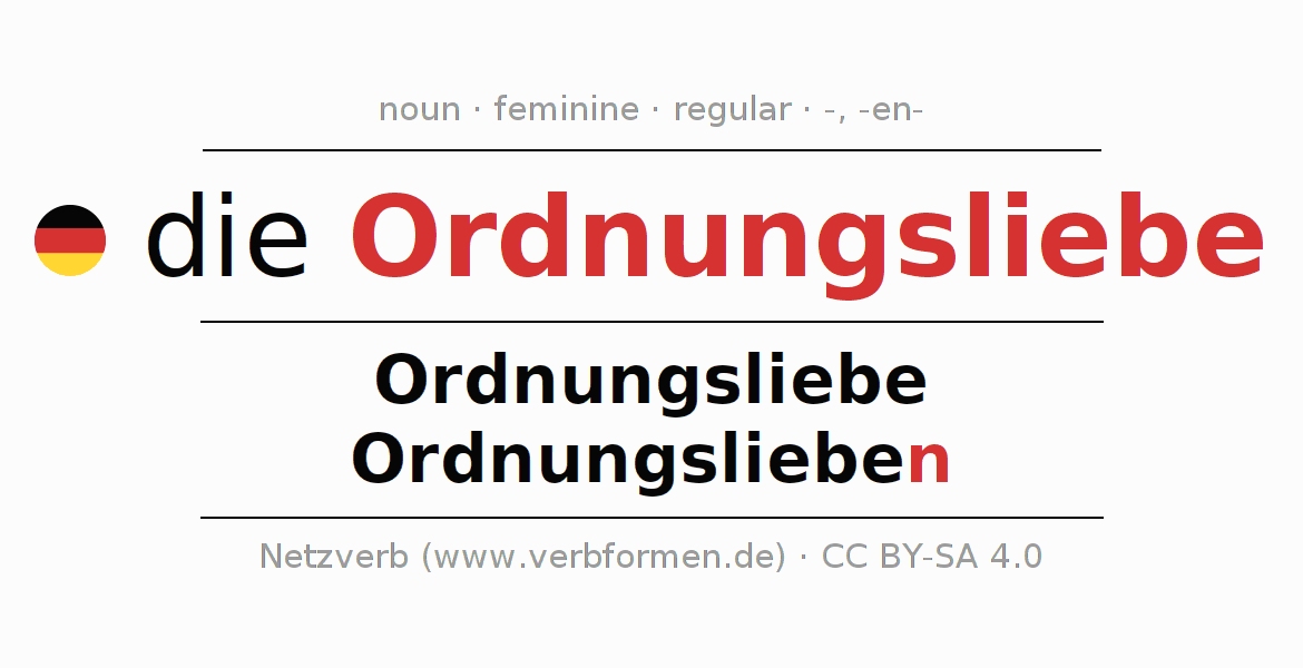 - Singular: die Ordnungsliebe, der Ordnungsliebe, der Ordnungsliebe, die Ordnungsliebe