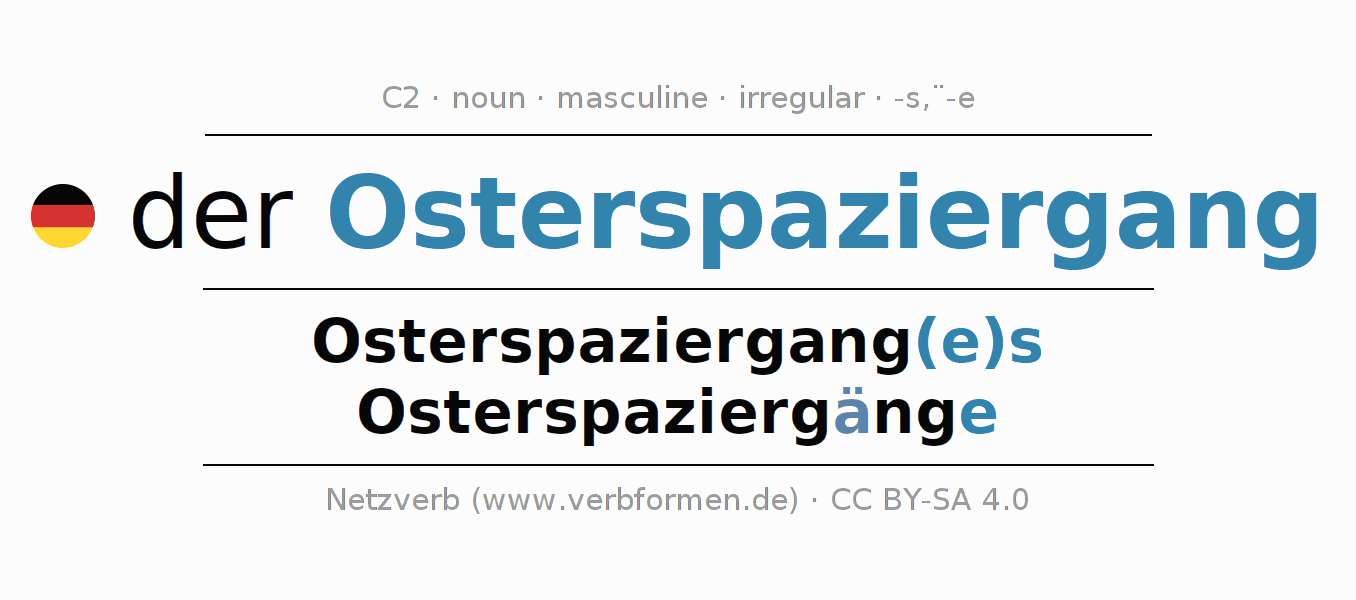 Nom. | der Osterspaziergang | die Osterspaziergänge |