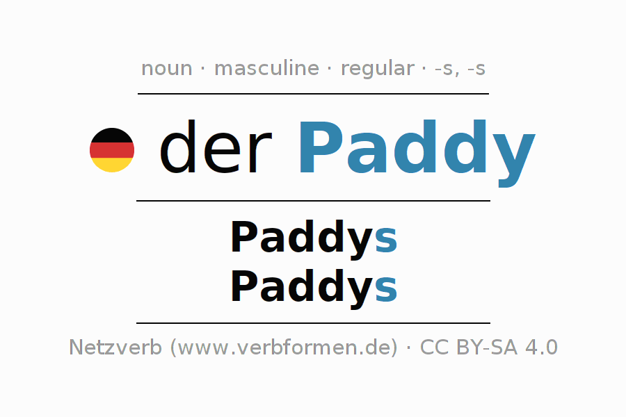 - Singular: der Paddy, des Paddys, dem Paddy, den Paddy