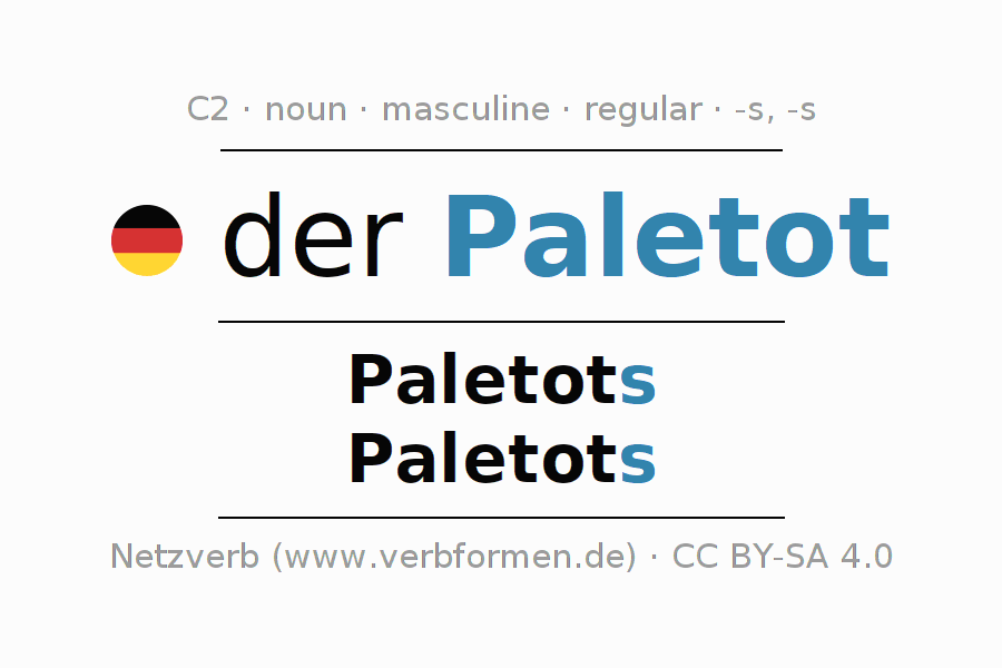 - Singular: der Paletot, des Paletots, dem Paletot, den Paletot