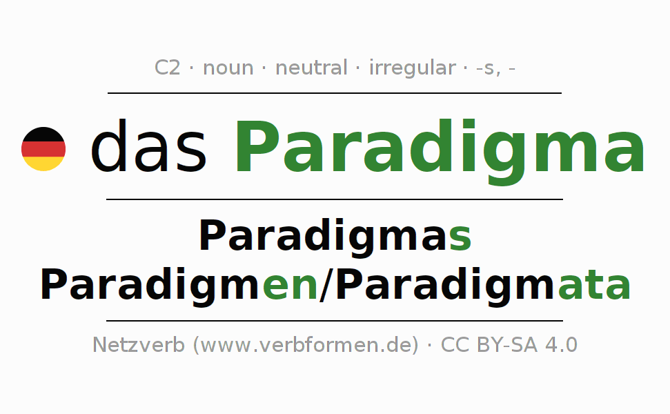 - Singular: das Paradigma, des Paradigmas, dem Paradigma, das Paradigma