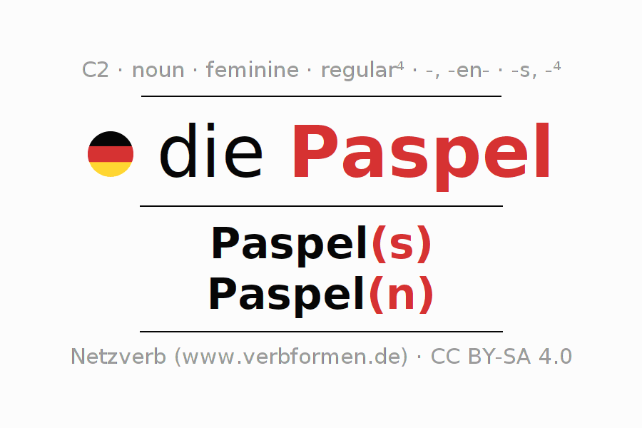 - Singular: die Paspel, der Paspel(s), der Paspel, die Paspel