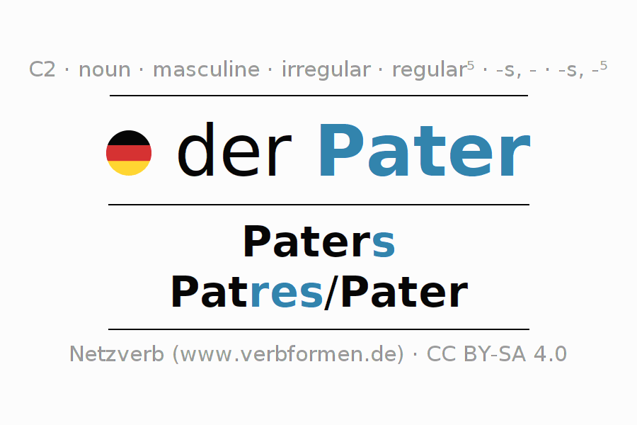 - Singular: der Pater, des Paters, dem Pater, den Pater