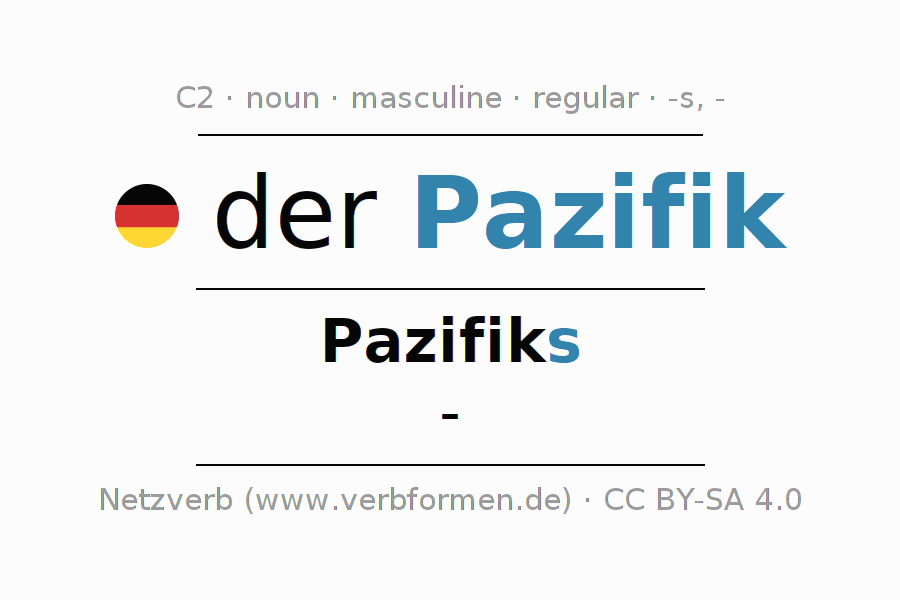 - Singular: der Pazifik, des Pazifiks, dem Pazifik, den Pazifik