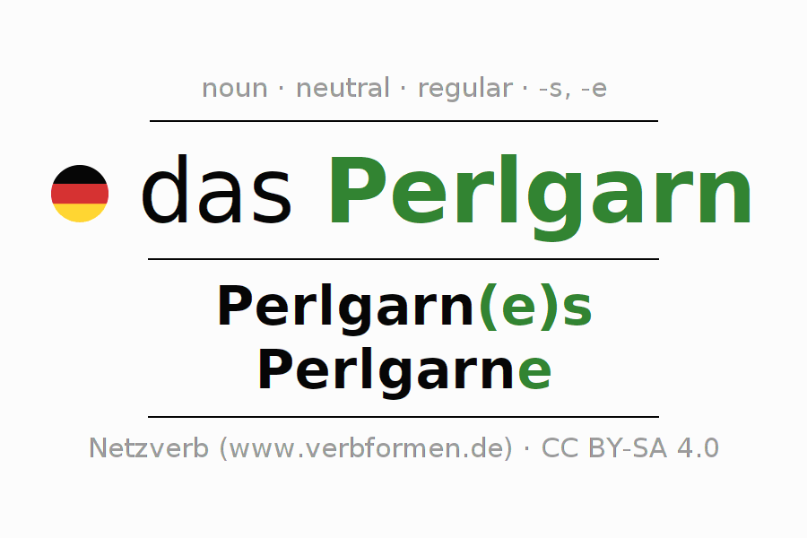 - Singular: das Perlgarn, des Perlgarn(e)s, dem Perlgarn(e), das Perlgarn