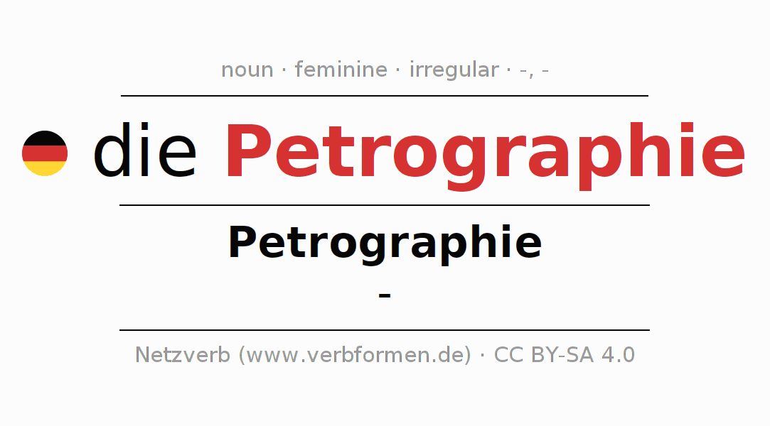 - Singular: die Petrographie, der Petrographie, der Petrographie, die Petrographie