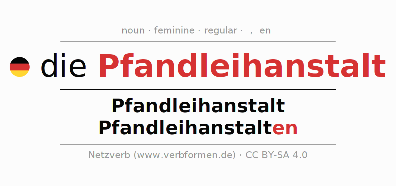 | Nom. | die Pfandleihanstalt | die Pfandleihanstalten |