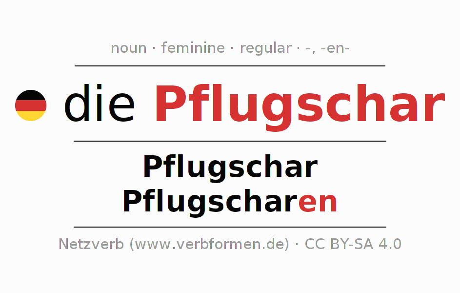 - Singular: die Pflugschar, der Pflugschar, der Pflugschar, die Pflugschar