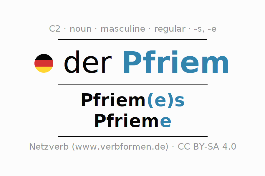 | Dat. | dem Pfriem(e) | den Pfriemen |