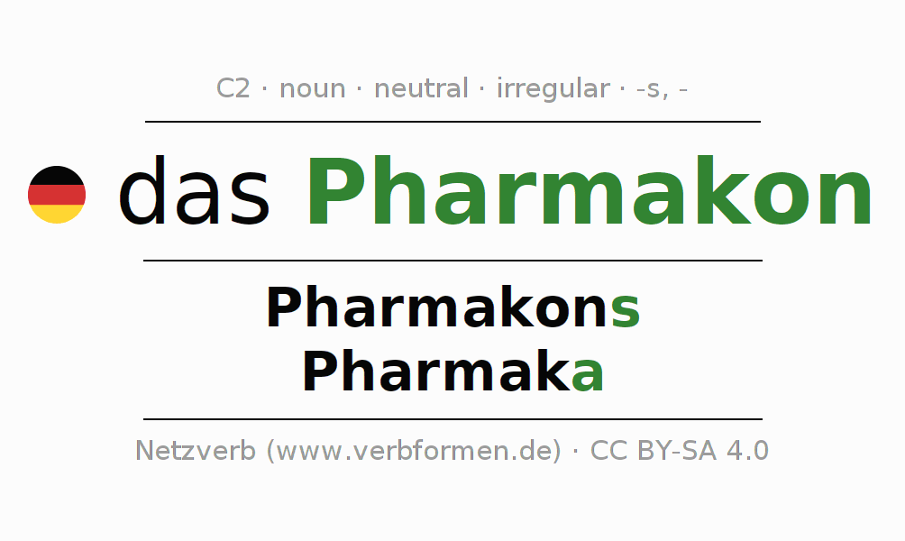 - Singular: das Pharmakon, des Pharmakons, dem Pharmakon, das Pharmakon