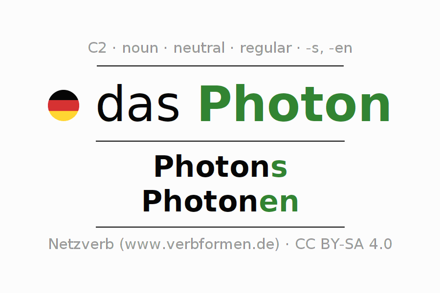 - Plural: die Photonen, der Photonen, den Photonen, die Photonen