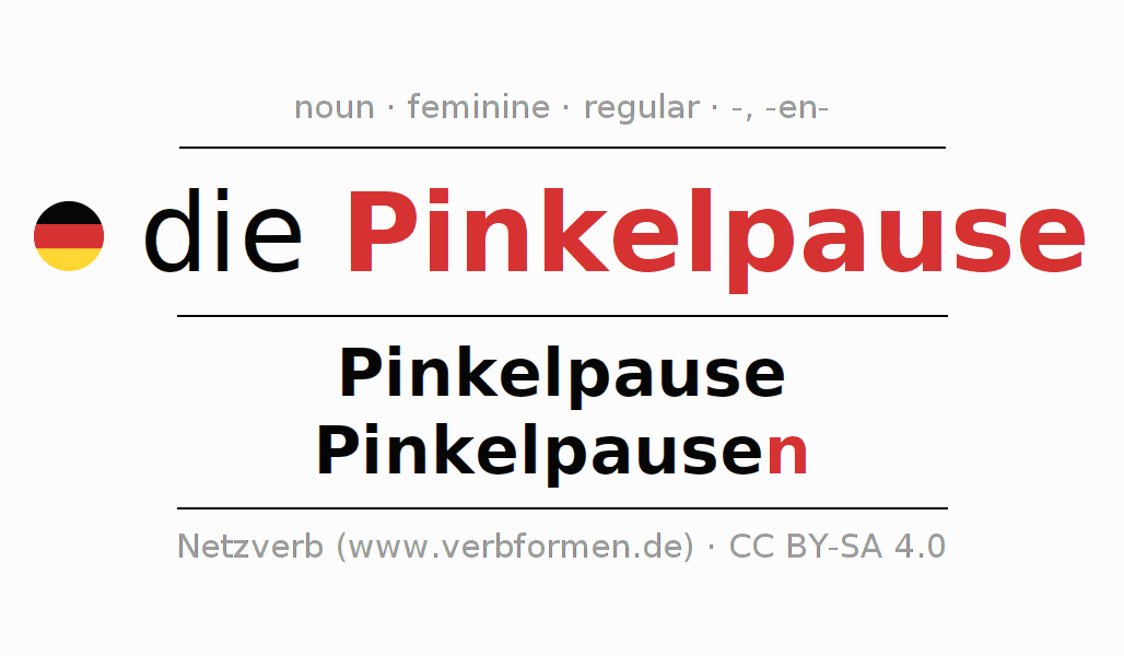 | Nom. | die Pinkelpause | die Pinkelpausen |