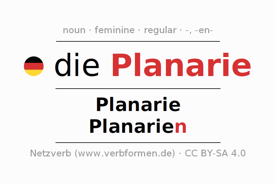- Plural: die Planarien, der Planarien, den Planarien, die Planarien