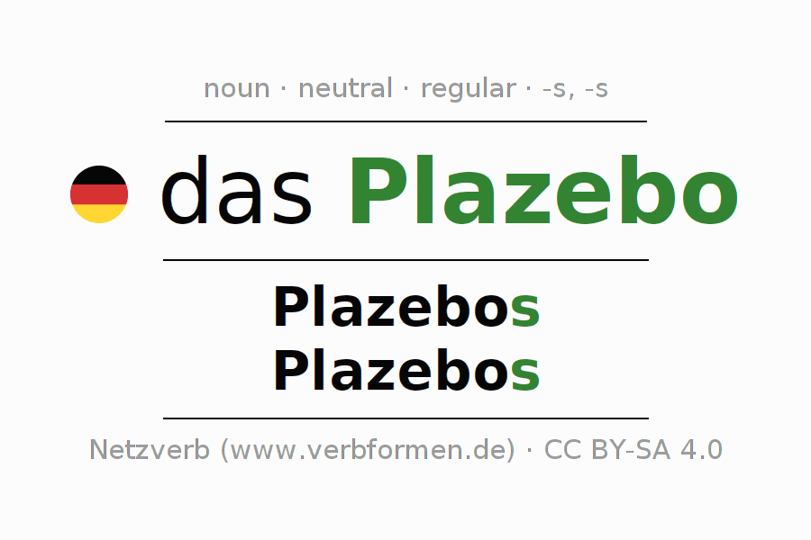 - Singular: das Plazebo, des Plazebos, dem Plazebo, das Plazebo