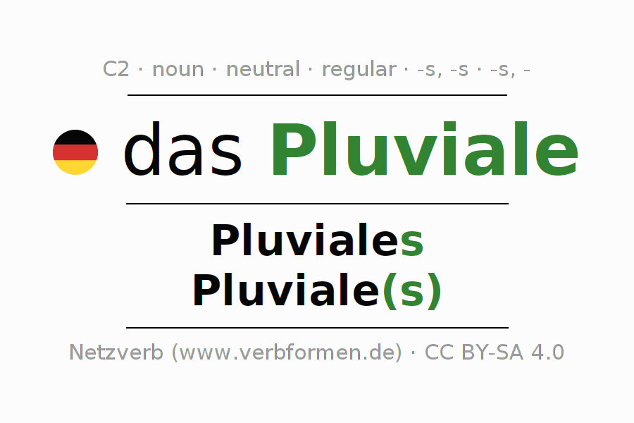 - Plural: die Pluviale(s), der Pluviale(s), den Pluviales/Pluvialen, die Pluviale(s)