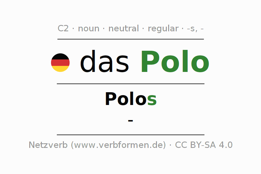 - Singular: das Polo, des Polos, dem Polo, das Polo
