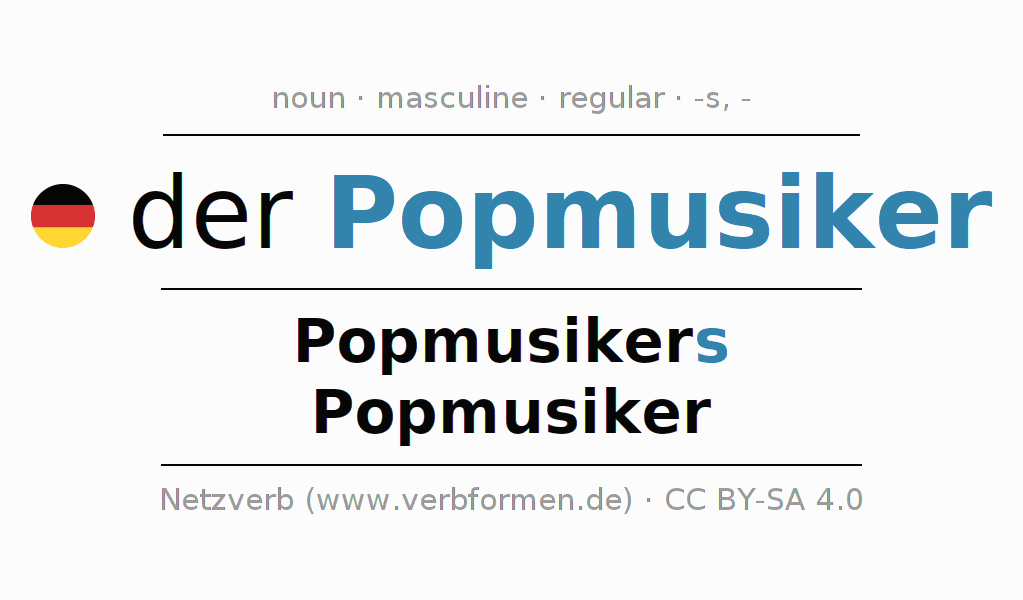- Singular: der Popmusiker, des Popmusikers, dem Popmusiker, den Popmusiker