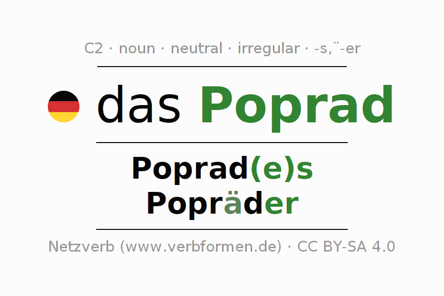 - Plural: die Popräder, der Popräder, den Poprädern, die Popräder