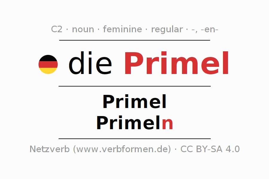 - Plural: die Primeln, der Primeln, den Primeln, die Primeln