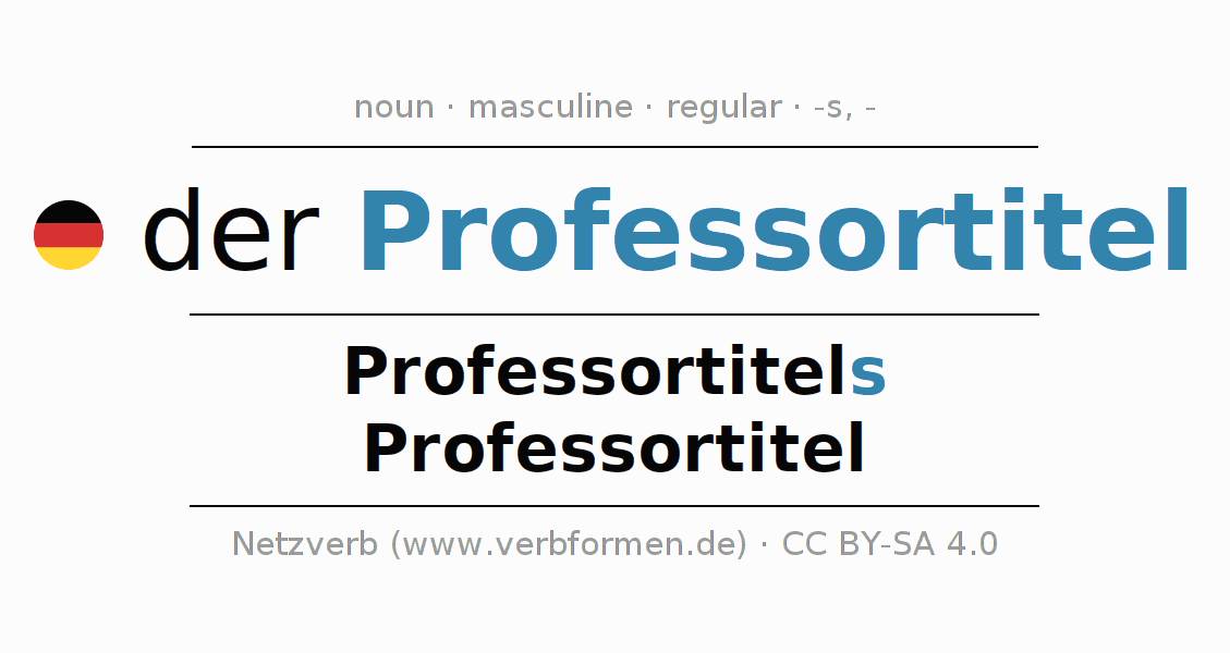 - Singular: der Professortitel, des Professortitels, dem Professortitel, den Professortitel