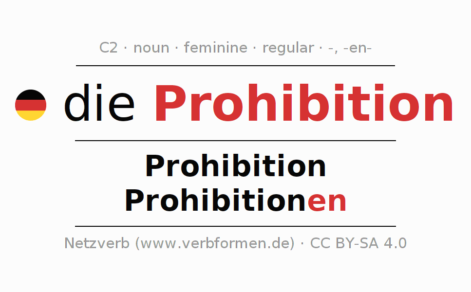 - Singular: die Prohibition, der Prohibition, der Prohibition, die Prohibition