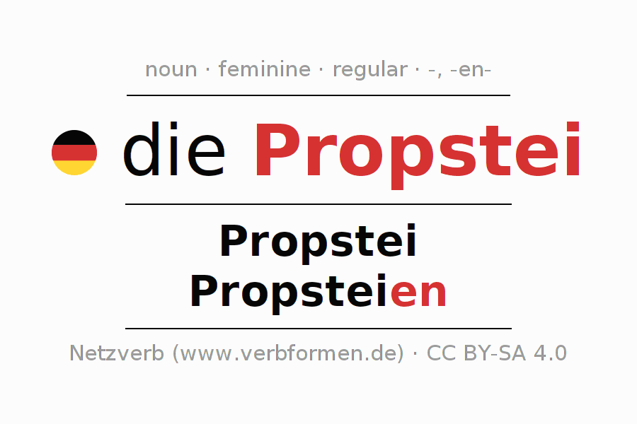 - Plural: die Propsteien, der Propsteien, den Propsteien, die Propsteien