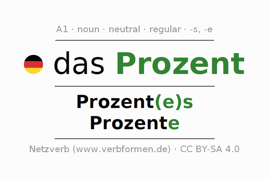 - Plural: die Prozente, der Prozente, den Prozenten, die Prozente