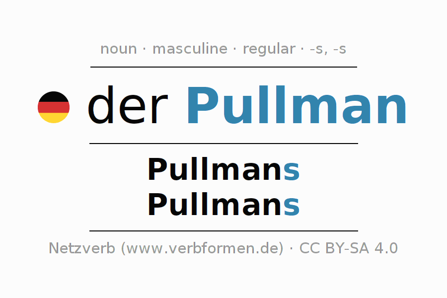 - Singular: der Pullman, des Pullmans, dem Pullman, den Pullman