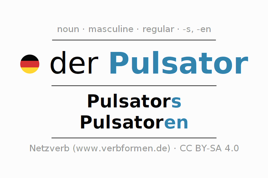 - Singular: der Pulsator, des Pulsators, dem Pulsator, den Pulsator
