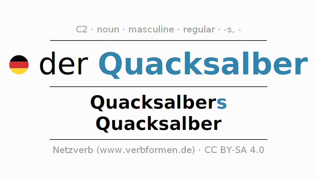 - Plural: die Quacksalber, der Quacksalber, den Quacksalbern, die Quacksalber