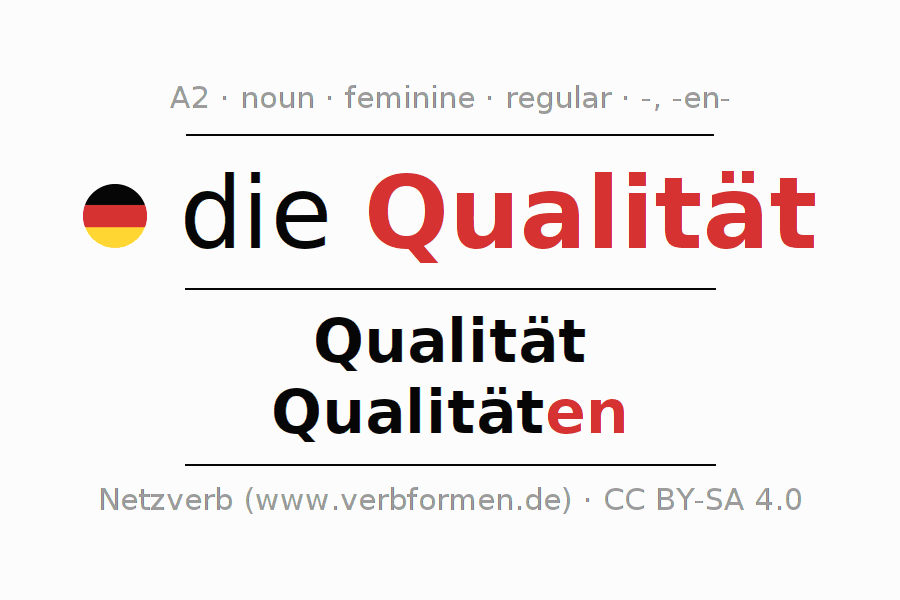 - Singular: die Qualität, der Qualität, der Qualität, die Qualität