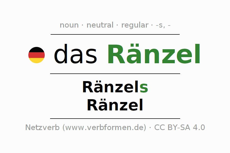 - Plural: die Ränzel, der Ränzel, den Ränzeln, die Ränzel