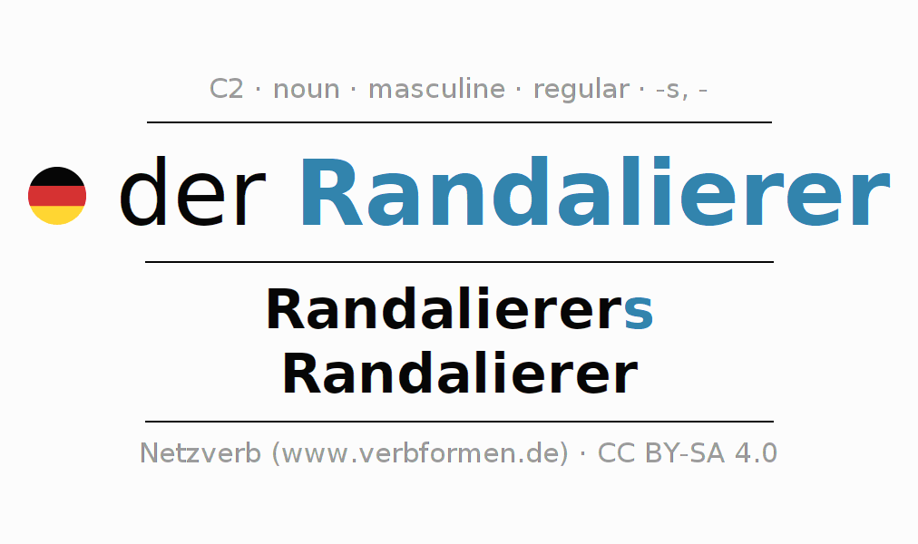 - Singular: der Randalierer, des Randalierers, dem Randalierer, den Randalierer