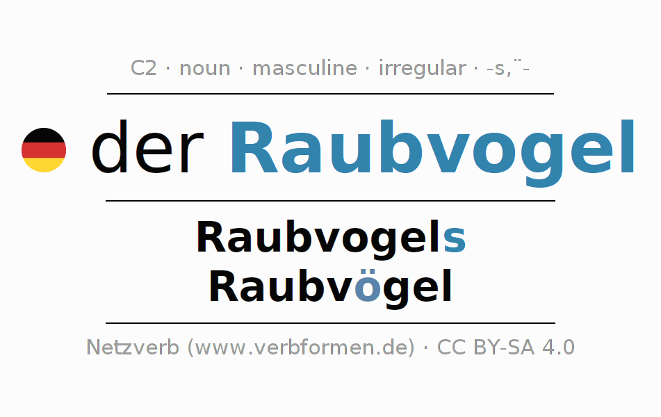 - Singular: der Raubvogel, des Raubvogels, dem Raubvogel, den Raubvogel