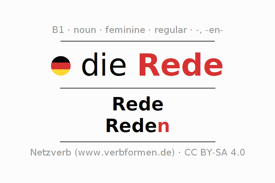 - Plural: die Reden, der Reden, den Reden, die Reden