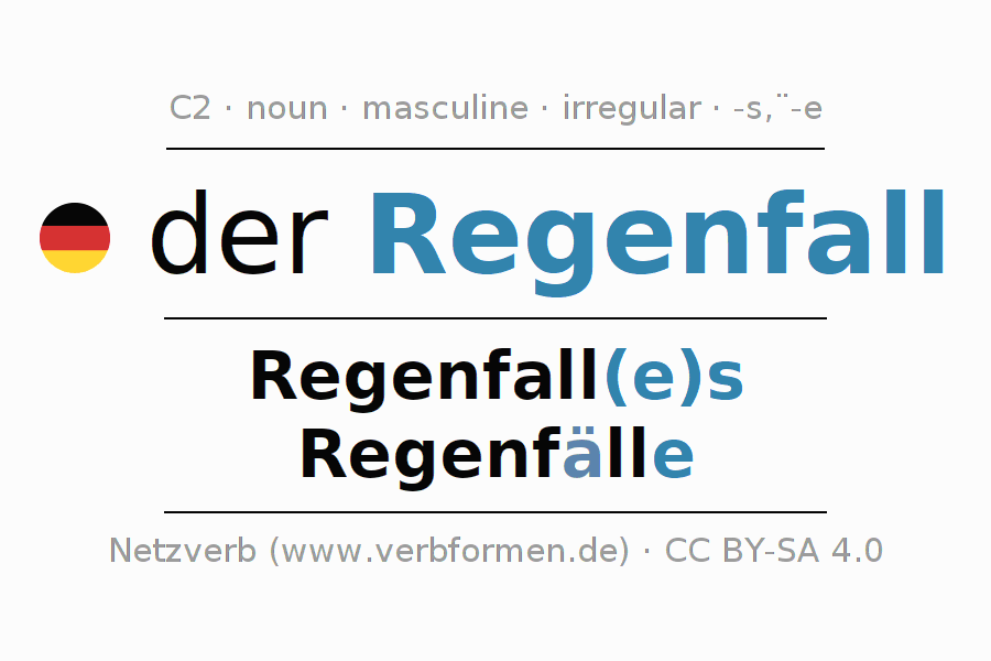 - Plural: die Regenfälle, der Regenfälle, den Regenfällen, die Regenfälle