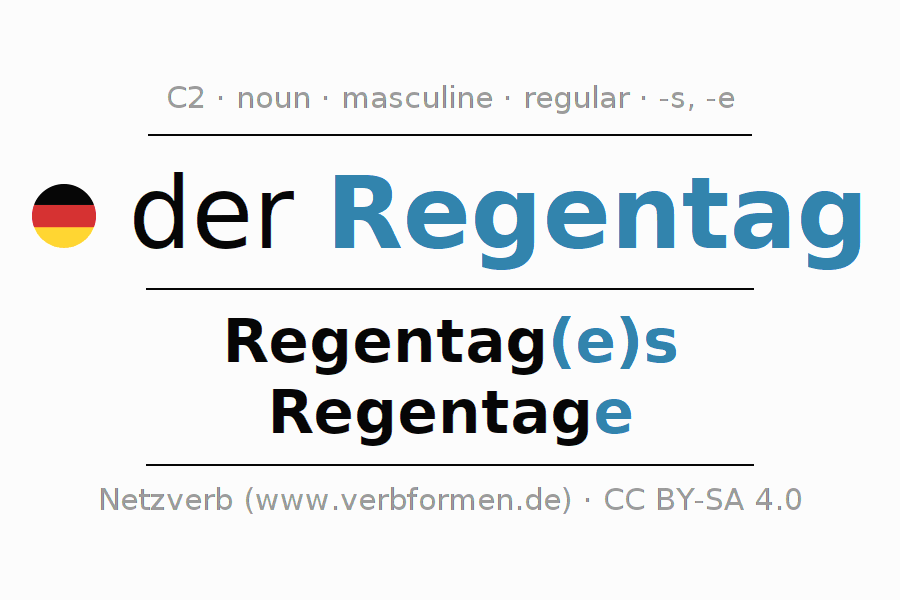 - Plural: die Regentage, der Regentage, den Regentagen, die Regentage