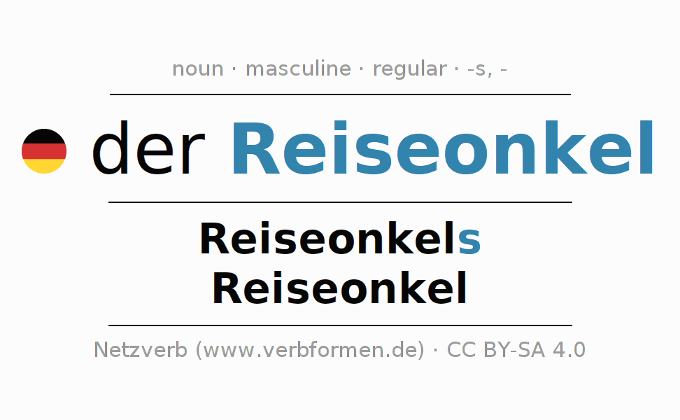 - Singular: der Reiseonkel, des Reiseonkels, dem Reiseonkel, den Reiseonkel