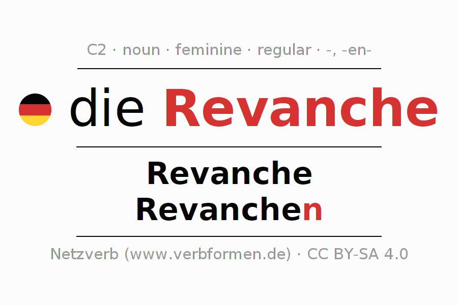 - Plural: die Revanchen, der Revanchen, den Revanchen, die Revanchen
