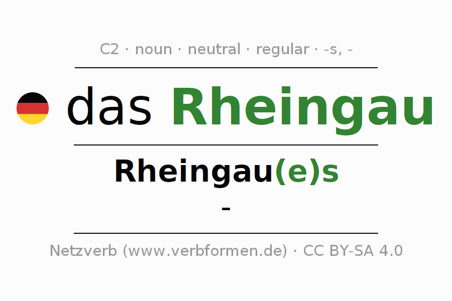 - Singular: das Rheingau, des Rheingau(e)s, dem Rheingau, das Rheingau