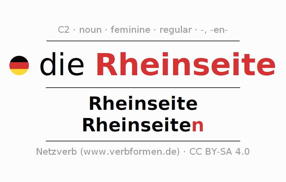 - Singular: die Rheinseite, der Rheinseite, der Rheinseite, die Rheinseite