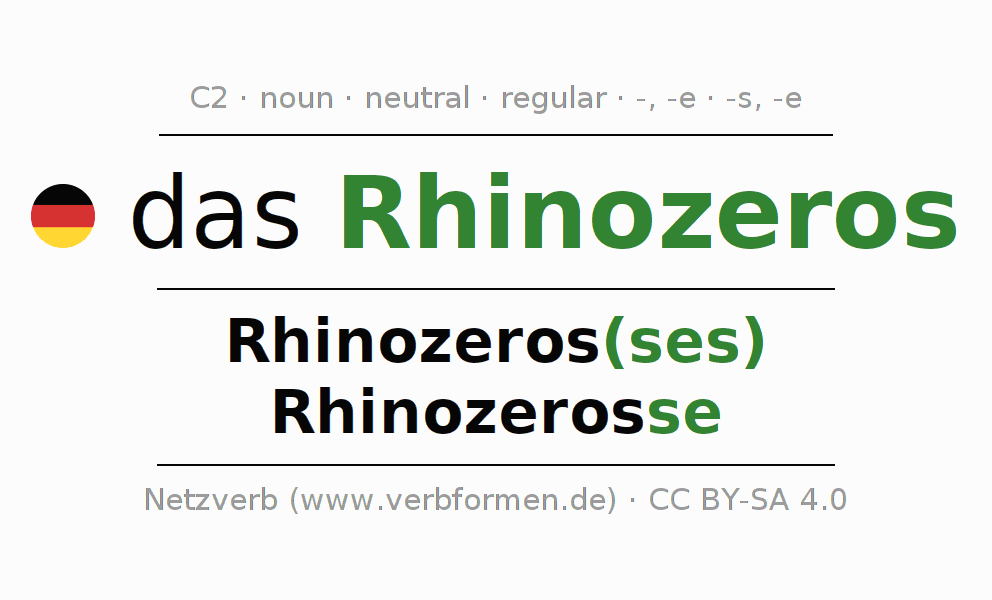 | Acc. | das Rhinozeros | die Rhinozerosse |