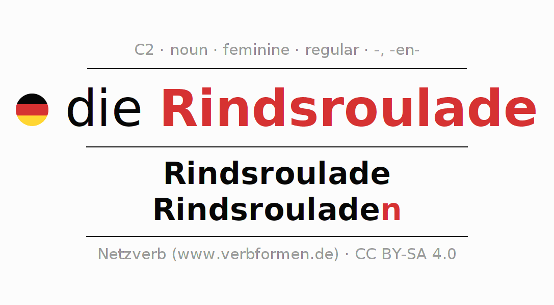 - Singular: die Rindsroulade, der Rindsroulade, der Rindsroulade, die Rindsroulade