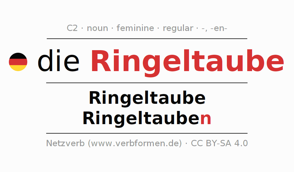 - Singular: die Ringeltaube, der Ringeltaube, der Ringeltaube, die Ringeltaube
