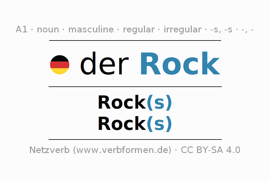 - Plural: die Rock(s), der Rock(s), den Rock(s), die Rock(s)