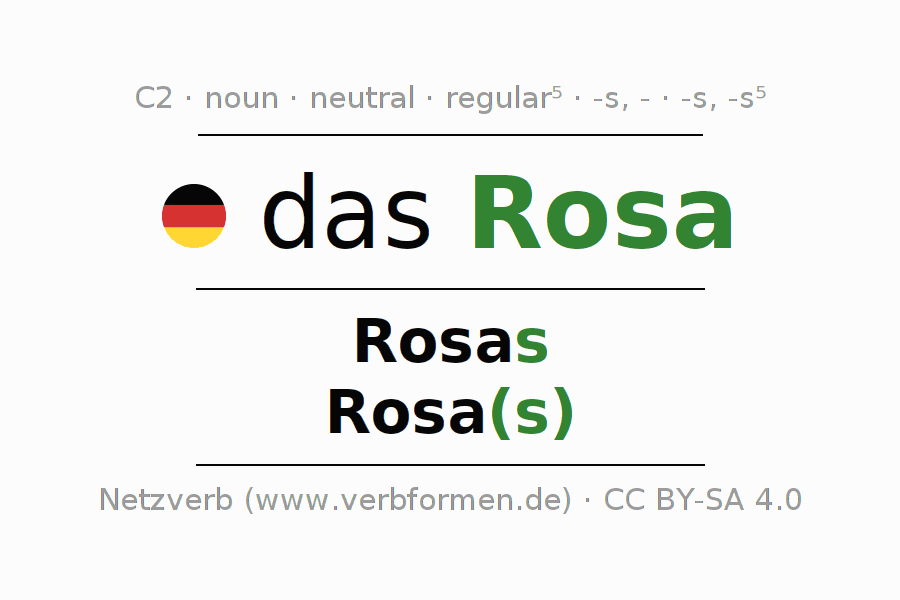 - Singular: das Rosa, des Rosas, dem Rosa, das Rosa